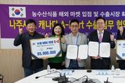 [경기뉴스원/경기뉴스1] | 전라남도 나주시가 캐나다 현지 대형 유통업체와 손잡고 지역 농수산식품의 글로벌 수출 확대에 나섰다. 나주시는 지난 24일 전라남도 농업기술원에서 캐나다 A-Mart와 500만 달러 규모의 농수산식품 수출 업무협약(MOU)을 체결했다고 27일 밝혔다. 최병화 대표는 나주 출신으로 2007년 캐나다 캘거리에서 아시아 식품 전문 유통업체를 설립해 현재 3개 매장을 운영하고 있다. 이번 협약은 ‘2025 국제농업박람회’ 기간 중 진행됐으며 윤병태 나주시장과 최병화 대표, 나주 수출업체 골든힐 한문철 대표가 참석해 나주 농수산물의 캐나다 수출 확대와 상호 협력을 약속했다. 앞서 시는 토론토 팬아시아푸드와의 협약에 이어 두 번째 캐나다 진출 성과를 거뒀으며 올해 9월 기준 캐나다로 약 366톤의 농수산물을 수출했다. 이번 협약으로 미주 지역 내 나주 농수산식품의 수출 기반이 한층 강화될 것으로 기대된다. 윤병태 나주시장은 “이번 협약은 나주 농산물의 글로벌 경쟁력을 높이는 중요한 계기”라며 “해외 판로를 다각화해 지역 농가의 실질적인 소득 증가로 이어지도록