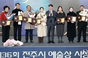 [경기뉴스원/경기뉴스1] | 전주시가 각자 자신이 활동하는 분야에서 빛을 발하며 전주를 대한민국 대표 문화도시로 만드는 데 앞장선 예술인들을 선정해 시상했다. 시는 24일 문화공판장 작당에서 지역 문화예술 발전에 기여한 예술인의 공로를 기리기 위한 ‘제36회 전주시 예술상 시상식’을 개최했다. 전주시 예술상은 전주시를 대표하는 문화예술상으로, 시는 각 분야에서 뛰어난 예술적 성과와 지역 문화예술 진흥에 기여한 예술인을 해마다 선정해 시상하고 있다. 올해 전주시 예술상 수상자는 지난달 26일 열린 예술상 선정 심사위원회의 엄정한 심사를 거쳐 문학 부문의 이연희 씨 등 8개 부문 8명의 수상자가 결정됐다. 영광의 제36회 예술상 수상자는 △문학 부문=이연희 석정문학회 부회장(67세, 여) △음악 부문=소중연 바흐챔버플레이어스 대표(59세, 남) △국악 부문=김형태 (사)전북민족예술인총연합 전주지부 상임연출(49세, 남) △무용 부문=박현희 박현희무브먼트 예술 총감독(51세, 여) △미술 부문=이철규 예원대학교 객원교수(65세, 남) △사진 부문=박성민 사진전문갤러리 봄 대표(53세, 남) △연극 부문=