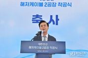[경기뉴스원/경기뉴스1] | 탄소중립경제특별도인 충남에서 국내 최대 해저케이블 공장이 2027년 문을 연다. 도에 따르면, 대한전선은 25일 당진 아산국가산업단지 고대지구에서 해저케이블 2공장 착공식을 개최했다. 김태흠 지사와 호반그룹 창업주 김상열 회장, 송종민 대한전선 대표이사 등 350여 명이 참석한 가운데 연 이날 행사는 김 지사 축사, 대한전선 사업 성과 및 미래 비전 영상 상영, 세리머니, 1공장 투어 등의 순으로 진행했다. 대한전선 해저케이블 2공장은 도가 지난해 유치에 성공한 지 10개월 만에 초고속으로 첫 삽을 떴다. 이 공장은 아산국가산단 고대지구 21만 4713㎡의 부지에 2027년까지 1조 원을 투입해 건립한다. 주요 생산품은 초고압직류송전(HVDC) 해저케이블과 장조장 외부망 해저케이블 등이다. 이를 위해 대한전선은 세계 최고 수준의 수직연속압출시스템(VCV) 타워와 첨단 설비를 구축한다. 도는 2공장이 가동을 시작하면 ‘서해안 에너지고속도로’ 정책 핵심 기자재인 해저케이블 공급망 역할을 하며 국가 에너지 정책에 기여하고, 재생에너지 보급 확대를
