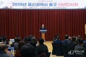 [경기뉴스원/경기뉴스1] | 울산 동구는 1월 15일 오전 10시 30분 동구청 2층 대강당에서 2026년 울산광역시 동구 신년 인사회를 개최했다. 이번 신년 인사회는 동울산청년회의소(회장 전종현)가 주관한 것으로 김종훈 동구청장을 비롯한 동구 지역 각급 기관·단체장 200여 명이 참석하여, 구정 발전을 위한 덕담과 화합의 시간을 나눴다. 이날 행사에서는 ‘AI에게 동구의 미래를 묻다’라는 주제로 인공지능 프로그램을 활용해 동구청 직원들이 직접 제작한, ‘다시 뛰는 심장, 2040 울산 동구’ 영상을 함께 시청하며 동구의 미래를 그려보는 흥미로운 시간을 마련했다. 김종훈 구청장은 지난 3년 반의 시간 동안 ‘더 잘 사는 동구’를 목표로, 구청과 각급 기관단체가 함께 동구 주민의 더 나은 삶을 위해 힘써 왔다”라며 각급 기관·단체장들에게 감사의 인사를 전했다. 또한 “앞으로 산업과 도시의 구조 자체가 급변하는 미래를 맞이하여 한 단계 더 도약하고 성장하는 동구를 만들기 위해 기관·단체·기업이 손잡고 미래의 힘찬 여정을 함께해 주시길 바란다”라고 말했다.