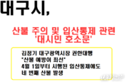 【대구=경기뉴스원/경기뉴스1】 | 대구시는 최근 경북 및 대구 북구 노곡동 함지산에서 발생한 대형 산불로 큰 피해가 발생했다고 전했다. 다행히 많은 비로 잔불은 진화됐으나, 이번 산불은 4월 1일부터 시행된 입산통제에도 불구하고 발생한 네 번째 산불이었다. 대구시는 산불의 주요 원인이 인위적 요인으로 밝혀졌으며, 화기 사용, 담배꽁초 투기, 쓰레기 소각 등을 절대 금지해야 한다고 강조했다. 또한, 입산통제에 따른 지역 상권의 어려움에 대해 공감하며, 공직자들이 상권 활성화에 나서겠다고 밝혔다. 특히, 연휴 기간 동안 산불 위험이 여전히 높다고 경고하며, 시민들의 각별한 주의와 협조를 당부했다. 김정기 대구광역시장 권한대행은 "산불 예방이 최선"이라며, 시민들의 실천이 안전을 지키는 힘이라고 강조했다.