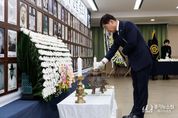 [경기뉴스원/경기뉴스1] | 김병전 부천시의회 의장은 21일, 부천시청 소통마당에서 열린 항일독립유공자 선열 추모제에 참석해 독립을 위해 헌신하신 순국선열을 향한 깊은 추모와 존경의 마음을 전했다. 이날 행사는 광복회 부천시지회가 주관한 가운데 헌화와 분향, 추모사, 헌시낭송 등이 진행됐다. 김병전 의장은 추모사를 통해 “광복은 몇몇 영웅들만의 공이 아니라, 나라를 지키겠다는 마음 하나로 싸우고 버텨낸 수많은 선열들의 희생과 저항으로 이뤄낸 결실”이라며 “선열들의 정신은 기록에만 머물지 않고 오늘날에도 우리 사회를 지탱하는 든든한 뿌리”라고 강조했다. 이어 “부천시의회 27명의 의원 모두는 선열들이 남기신 가치와 정신을 지키고, 선열들께서 자랑스러워하실 부천을 만들어가겠다”고 밝혔다.