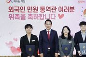 [경기뉴스원/경기뉴스1] | 충남 서산시가 관내 외국인의 민원 편의를 높이기 위해 외국어 민원 통역관을 위촉했다고 밝혔다. 시는 13일 시청 시장실에서 이완섭 서산시장, 외국어 민원 통역관 3명이 참석한 가운데 위촉식을 개최했다. 외국어 민원 통역관은 시 직원 중 영어·일본어·중국어에 능통한 직원 3명으로 구성됐다. 이들은 종합민원실을 방문한 외국인이 소통으로 인해 민원 처리에 어려움을 겪는 경우, 통화를 통한 통역을 지원한다. 시는 통역 지원을 통해 외국인의 민원 처리 접근성이 향상될 것으로 전망했다. 이완섭 서산시장은 “종합민원실에 방문하는 관내 외국인이 신속하고 편리하게 민원을 처리할 수 있도록 최선을 다해달라”라고 말했다. 한편, 서산시 관내 외국인 인구는 올해 3월 말 기준 6,200명이다.
