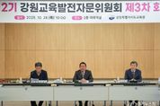[경기뉴스원/경기뉴스1] | 강원특별자치도교육청은 28일 도교육청 대회의실에서 ‘제12기 강원교육발전자문위원회 제3차 회의’를 열고 2026년 도교육청 주요업무계획을 함께 논의했다. 이번 회의에서는 △2026 강원학생성장진단평가 △인공지능 교수학습 플랫폼 ‘강원아이로(AI-ro)’ △강원특별자치도형 마이스터고 신설 △강원농어촌유학 △교육발전특구 등 2026년 강원교육 핵심 정책을 중심으로 다양한 안건에 관해 의견을 나눴다. 신경호 교육감은 “마음껏 펼치는 강원교육을 위해 달려온 지난 4년 간의 성과를 바탕으로 더 나은 강원교육을 완성해 나갈 수 있도록 깊이 있고 폭넓은 자문과 조언을 해주실 것을 당부한다”라고 말했다.
