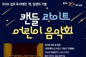 [경기뉴스원/경기뉴스1] | 김포시 도서관은 2026 김포 독서대전의 시작을 알리는 공연으로 '캔들 라이트 어린이 음악회'를 2026년 3월 12일 19시 10분부터 20시 10분까지 모담도서관 1층 다목적강당에서 진행한다. 봄빛이 스며들듯 1200~1300개의 LED캔들을 켜고 앙상블 여운팀이 디즈디 메들리와 지브리 메들리, 어린이들이 따라 부를 수 있는 인기 동요를 연주한다. 또한 공연이 끝나면 '모아봐요 스탬프북'을 배포하여 올해 김포시 도서관에서 진행하는 독서문화진흥 프로그램을 참여 후 스탬프를 모아 2026 김포 독서대전 행사에서 활용할 수 있도록 안내한다. 도서관 관계자는 “이번 공연은 2026 김포 독서대전을 알리고, 어린이와 가족들이 도서관에서 다양한 독서 활동과 행사를 참여 할 수 있도록 응원하는 자리로, 김포시 도서관은 올해 독서대전 슬로건 '책, 일생의 기쁨'에 맞게 전 연령층이 함께할 수 있는 독서문화진흥 프로그램을 기획할 예정”이라고 말했다. 참여 신청은 2026년 2월 24일 10시부터 김포시 통합예약 누리집 (모집/행사)에서 진행한다.