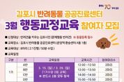 [경기뉴스원/경기뉴스1] | 김포시는 반려동물 공공진료센터 연계 프로그램인 ‘반려견 행동교정교육’ 제1기 참여자를 모집한다고 밝혔다. 해당 교육은 반려견의 문제행동을 개선하고 이웃과 상생하는 건강한 반려문화를 조성하기 위해 지난해부터 운영해 온 프로그램이다. 시민들의 높은 관심과 호응에 힘입어 올해 보다 체계적이고 내실 있는 교육과 맞춤형 지도를 이어갈 예정이며, 교육은 연간 총6기, 12회(기수당 2회)로 나뉘어 운영될 계획이다. 1기 교육은 3월 15일, 3월 29일 총2회에 걸쳐 진행된다. 1회차는 실내교육으로 가정에서 나타나는 습관적 문제행동의 원인을 분석하고 맞춤 교정훈련을 실시하며, 2회차는 실외교육으로 1회차 훈련 행동 점검 및 산책 방법, 사회화 교육을 중심으로 운영할 계획이다. 특히 이번 교육은 '개는 훌륭하다', '동물농장' 등 다수 프로그램에서 반려견 행동 교정을 지도해 온 ‘권혁필 행동교정사’와 함께한다. 반려견의 습관적 행동의 원인을 면밀히 분석해 생활 습관은 물론 양육 환경까지 개선할 수 있도록 2:1 맞춤형으로 진행된다. 반려견의 행동 교정이 필요한 김포시민이라면 누구나