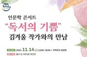 [경기뉴스원/경기뉴스1] | 울산 남구 구립도서관은 인문학 콘서트‘김겨울 작가와의 만남’ 수강생을 모집한다. 수강신청은 15일 오전 10시부터 남구 구립도서관 누리집과 전화, 방문 신청이 가능하며 선착순 300여 명 규모로 자세한 사항은 도서관 누리집 공지사항을 참고하거나 신복도서관으로 문의하면 된다. 이번 ‘인문학 콘서트’는 11월 14일 오후 2시 남구청 6층 대강당에서 개최되며 유튜브 채널(구독자 29만 명) ‘겨울서점’ 운영자이자 작가로 활발히 활동 중인 김겨울 작가를 초청해 ‘독서와 글쓰기를 통해 더 나은 자신으로 나아가는 길에 대해 이야기를 나누는 시간’이라는 주제로 진행될 예정이다. 김겨울 작가는 2024년까지 ‘FM 라디오 북클럽 김겨울입니다’의 DJ로 활동하는 등 다양한 방면에서 독자들과 만나고 있는 인기 작가로 유튜브 채널 ‘겨울서점’과 저서를 통해 독서의 즐거움을 일깨워 왔으며 독자 스스로 삶의 의미를 발견하고 내면을 돌아보도록 이끄는 힘이 있다는 평가를 받고 있다. 저서로 ‘독서의 기쁨’, ‘책의 말들’, ‘겨울의 언어’, ‘활자 안에서 유영하기’ 등 다수의 에세이를 집필하며