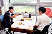 [경기뉴스원/경기뉴스1] | 변광용 거제시장은 23일 국회를 찾아 김태선 국회의원(울산 동구), 민주당 최고위원 서삼석 의원을 차례로 만나 조선업 외국인 쿼터제 축소, 한·아세안 국가정원 조성사업 재추진 방안에 대해 각각 논의했다. 먼저, 국회 환경노동위원회 소속 김태선 국회의원과 만난 변 시장은 조선업 외국인 쿼터제 축소와 조선산업기본법 제정에 대해 의견을 나눴다. 거제시와 울산 동구는 대표적인 조선업 도시로 숙련공 이탈과 외국인 노동자 의존 심화로 인한 인구감소와 지역경제 불황이라는 공통의 문제를 겪고 있다. 이날 면담에서는 외국인 의존도를 줄이기 위한 △외국인 쿼터제 축소(현행 30%→20%) 및 지자체 사전 협의 제도 신설, △내국인 인력 양성 강화 및 지원 확대, △원·하청 노동자 간 차별 처우 금지, △이주노동자의 정주 여건 개선 등을 집중 논의했다. 변광용 시장은 “지역경제와 조선산업의 미래는 외국인 노동자 의존도를 줄이고 내국인 인력을 확보하는 데 달려있다”며, 외국인 쿼터제 축소를 위한 공동 기자회견을 제안했다. 김태선 국회의원은 “울산도 거제와 마찬가지로 외국인 인력