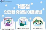[경기뉴스원/경기뉴스1] | ■ 겨울철 안전한 휴양림 이용방법 · 외출 전 기상정보를 확인하고 기온변화에 대비한 옷차림하기 · 산불 발생 및 기상 악화 시 해당 휴양림에 사전 문의 후 방문 자제하기 · 눈길, 빙판은 피하고 미끄럼방지 기능이 있는 굽 낮은 신발 신기 · 계단이나 목교 이용 시 난간 잡기, 처마 밑 고드름 조심하기 · 텐트 내 난방기구 사용 시 일산화탄소 경보기를 설치하고, 환기구 확보하기 · 지정된 장소에서 허용된 화구만을 사용하며, 불씨 꺼짐 확인 필수 국립자연휴양림, 겨울에도 안전하고 편안하게 이용하세요!