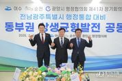 [경기뉴스원/경기뉴스1] | 순천시는 여수‧광양시와 함께 13일 순천대학교 70주년기념관에서 제41차 여수‧순천‧광양시 행정협의회 정기회의를 열고, 전남 동부권의 미래 경쟁력 확보를 위한 공동건의 3건을 공식 의결했다고 밝혔다. 이번 회의는 이재명 정부의 지방주도성장 기조와 전남‧광주 행정통합 논의에 발맞춰 국가 기간산업의 중심지인 여수‧순천‧광양 지역이 전남광주통합특별시의 핵심 축으로 기능할 수 있도록 법적‧제도적 기반을 마련하는 데 뜻을 모았다. 첫째, ‘전남 동부권 상생균형발전과 산업대전환’을 위한 행‧재정 지원 근거를 특별법에 반영하는 내용이다. 3개 시는 석유화학‧철강 등 기존 주력 산업의 고부가가치화와 탄소중립 사회 전환에 대응해 RE100 기반 미래첨단산업 복합거점을 마련하고 이차전지‧반도체‧우주항공 등 신산업을 육성해 지방이 주도하는 경제 성장의 선도 모델을 완성하겠다는 구상이다. 또한 여수광양항의 북극항로 거점항만 육성과 여수공항 국제공항 승격도 핵심 과제로 건의해 전남 동부권의 글로벌 경쟁력을 확보하겠다는 전략이다. 둘째, 전남광주통합특별시 출범 시 3개 청사의 기능별 본부제 운영