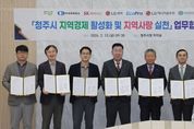 [경기뉴스원/경기뉴스1] | 청주시는 13일 임시청사 직지실에서 청주상공회의소 및 지역 내 주요 기업과 청주사랑상품권(청주페이) 활성화를 위한 업무협약을 체결했다. 이날 협약식에는 이범석 청주시장과 차태환 청주상공회의소 회장, 박호현 SK하이닉스㈜ 부사장, 김영대 ㈜LG화학 청주공장 대외협력팀장, 최상운 에코프로 부사장, 김용술 ㈜LG에너지솔루션 오창주재임원, 이규득 ㈜심텍 상무가 참여했다. 협약은 지역경제 활성화와 민생경제 회복을 위해 소상공인과의 상생 협력을 강화하고, 지역 내 소비를 촉진하기 위해 마련됐다. 협약의 주요 내용은 △직원들에게 지급하는 선택적 복지제도(복지포인트, 포상금 등) 중 일부를 청주페이로 지급하는 방안 마련 △설·추석 등 명절 기간 전통시장 장보기 행사 추진 △청주페이 사용 적극 홍보 등이다. 특히, 지난 9일 복대가경시장에서 열린 설맞이 전통시장 장보기 행사에는 이번 협약에 참여한 기업 중 에코프로와 ㈜심텍 임원들이 이범석 청주시장과 함께 참여해 지역 상생의 의미를 더했다. 이 시장은 “지역경제 활성화를 위한 이번 협약에 적극 동참해준 기업들의 지역사랑 실천