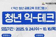 [경기뉴스원/경기뉴스1] | 익산시가 청년들의 자산 형성과 경제적 자립을 지원한다. 익산시는 오는 10월 21일부터 12월 16일까지 청년 맞춤형 금융교육 '청년 익테크'를 진행한다고 23일 밝혔다. 이번 프로그램 '익테크'는 익산과 재테크를 결합해 만든 명칭으로, 익산 청년들이 현명하게 돈을 관리하고 미래를 설계할 수 있도록 돕는다는 의미를 담고 있다. 교육 과정은 실생활에 밀접한 금융 지식을 중심으로 △월급 관리 기초와 세금 이해 △금융 상품과 경제 시장의 흐름 △노후 준비와 연금 체계 등 3개 강좌로 구성됐다. 교육은 참여자의 수요를 고려해 A·B·C반으로 나눠 반별 3회씩 운영되며, 매주 화요일 오후 6시 30분부터 8시 30분까지 익산청년시청에서 열린다. 대상은 익산에 거주하는 18~39세 청년으로, 반별 15명씩 총 45명을 선착순으로 모집한다. 참여 신청은 오는 24일 오전 9시부터 10월 16일까지 익산청년시청 누리집에서 가능하다. 각 강의는 사례 중심으로 진행되며, 질의응답과 함께 개인별 월급 관리 피드백도 제공한다. 더욱 자세한 내
