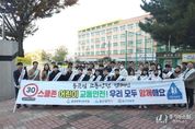 [경기뉴스원/경기뉴스1] | 울산광역시교육청은 6일 오전 8시에 울주군 울주명지초등학교 앞 어린이보호구역에서 ‘민·관·경이 함께하는 등굣길 교통안전 홍보 활동(캠페인)’을 펼쳤다. 이번 홍보 활동은 지역사회 협력으로 어린이보호구역 내 교통사고를 예방하고, 학생이 안심하고 학교에 다닐 수 있는 교통안전 문화를 확산하고자 마련됐다. 이날 행사에는 천창수 교육감을 비롯해 김종훈 울산광역시의회 의원, 울산시청, 울주군청, 울산울주경찰서, 강남교육지원청 관계자와 울주명지초등학교 학생과 교직원 등 50여 명이 함께했다. 참여자들은 어깨띠를 두르고 학교 정문에서 출발해 인근 횡단보도와 아파트 단지 주변을 돌며 교통안전 홍보 활동을 벌였다. 무인단속카메라, 신호기, 보도 안전울타리 등 보호구역 내 안전시설을 점검하고, 등굣길 학생들에게 교통안전 홍보 스티커가 부착된 구급함 밴드 세트와 교통안전 안내문을 나눠줬다. 현장에서는 학생들에게 ‘어린이 안전 수칙 일이삼사(일단 멈춤, 이쪽저쪽 살피기, 삼 초 동안 주의, 사고 예방)’ 등의 보행 수칙을 알리고, 시민들에게는 ‘안전속도 5030’, ‘어린이보호구