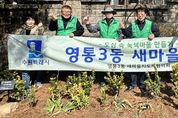 [경기뉴스원/경기뉴스1] | 수원시 영통구 영통3동은 지난 24일, 영통3동 새마을지도자협의회가 영통3차 풍림아파트 일원에 새마을정원을 조성했다고 밝혔다. 이날 새마을지도자협의회는 쾌적한 마을 환경 조성을 위해 겨우내 무성해진 잡초와 방치된 쓰레기를 제거한 뒤, 봄을 맞아 노란 꽃을 피우는 황금사철을 식재했다. 이번 행사는 영통3동 새마을지도자협의회 상반기 보조사업인 ‘새마을 정원 조성’ 사업의 일환으로 진행됐으며, 영통3동 새마을지도자협의회는 주민들에게 깨끗하고 쾌적한 생활환경을 제공하고자 꾸준히 봉사하고 있다. 김광회 영통3동 새마을지도자협의회장은 “올해도 꾸준히 봉사를 이어 나갈 수 있게 되어 회원 모두 보람을 느끼며, 이번 봄맞이 행사로 주민들이 쾌적한 녹색 풍경을 즐기길 바라는 마음이다”라고 전했다. 김인태 영통3동장은 “협의회의 구슬땀으로 이루어진 이번 새마을 정원에 주민들도 더욱 애착을 가져주실 것으로 기대한다”고 전했다.