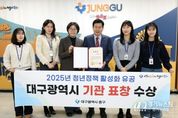 [경기뉴스원/경기뉴스1] | 대구 중구는 ‘2025년 청년정책 활성화 유공’ 분야에서 대구광역시 기관 표창을 받았다고 밝혔다. 대구시는 청년정책 전담 부서를 신설한 2017년 이후, 우수한 청년정책 추진 성과를 거둔 기초자치단체를 대상으로 표창을 수여한다. 대구 중구는 청년 주거 안정과 경제적 부담 경감을 위해 청년 사업자 임대료 지원, 청년 부동산 중개보수 및 이사비 지원 등 지역 정착형 사업을 대구 지역 지자체 최초로 추진해 왔다. 또한 행정안전부 주관 ‘2025년 청년마을 만들기’ 공모사업에 선정돼 청년친화도시 기반을 마련했으며, 청년 소통과 교류의 거점인 중구 청년지원센터 ‘잇플’을 개소해 청년 활동 공간을 확충했다. 이와 함께 ‘중구 청년의 날’ 행사와 청년 팝업 클래스 등 청년 맞춤형 문화 행사를 운영하고, 2030 청년창업지원센터와 북성로 청년창업클러스터를 중심으로 청년 친화형 일자리 환경과 창업 기반을 구축하는 등 다양한 분야에서 청년을 위한 실질적인 정책을 추진했다. 아울러, 중구보건소와 대구행복기숙사 간 ‘청춘 心쿵 프로젝트’ 업무협약을 체결하는 등 청년 건강증진을 위한 정책도 병