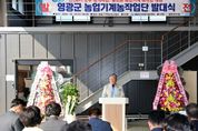 [경기뉴스원/경기뉴스1] | 영광군은 지난 23일 농업기술센터에서 장세일 군수, 군의회, 농업인 단체장 등 50여 명이 참석한 가운데 ‘농업기계 농작업단 발대식’을 개최했다고 밝혔다. 이번 사업은 민선 8기 공약사업 ‘중소농 농업기계 농작업 대행 사업’ 으로 농촌 고령화와 인력 부족 문제 해결을 위함이며, 농업기계 이용이 어려운 5,000㎡ 이하 소농업인을 대상으로 밭농업 작업을 대신 수행해주는 제도다. 영광군은 10월 13일 '영광군 농업기계 농작업 대행 운영 조례'를 제정하여 공포했으며, 10월 20일에는 농작업 대행료를 책정과 본격적 운영을 위해 22일 ‘영광군 농업기계 농작업단’을 전남 최대 규모로 발대했다. 농작업 대행은 쟁기, 로타리, 두둑 작업 등 밭농업 분야로, 농작업 대행료 단가는 ㎡당 1회 실시로 쟁기작업 30원, 로타리 작업 45원, 두둑성형작업 30원이다. 영광군은 농업기계 이용 불편사항과 농업경쟁력 강화를 위해 영광군 농업기센터에서 농작업단을 구성·운영하는 군 직접 대행 방식을 도입했으며, 농작업 대행 인력 5명을 배치했고 1회 추경 예산 4억 7천만 원 확보로 농용트랙터 2