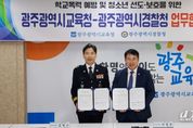 [경기뉴스원/경기뉴스1] | 광주시교육청은 31일 본청 상황실에서 광주광역시경찰청과 이정선 교육감과 김영근 광주경찰청장 등이 참석한 가운데 ‘학교폭력 예방 및 청소년 선도·보호’를 위한 업무협약을 체결했다. 이번 협약은 시교육청-광주경찰청의 협력체제 구축 및 공동대응을 위해 마련됐다. 이번 협약에 따라 두 기관은 ▲학교폭력 및 청소년 범죄 예방 및 대응에 관한 사항 ▲청소년 선도 및 보호 활동에 관한 사항 ▲양 기관 사업에 대한 상호 홍보 및 정보 공유에 관한 사항 ▲기타 양 기관의 교류 및 협력에 관한 사항 등을 협력한다. 또 연말까지 ▲소년범 상담특화 프로그램 ▲학교폭력∙청소년 범죄 예방(청소년 도박, 사이버 폭력 포함) 퀴즈 대회 ▲청소년 절도 예방 캠페인 및 합동 순찰 ▲찾아가는 학교폭력 예방교육 등을 실시할 예정이다. 이정선 교육감은 “학교폭력 예방 및 청소년 선도∙보호는 교육기관과 지역기관의 유기적 협력이 매우 중요하다”며 ”모든 광주 학생이 학교폭력과 청소년 범죄로부터 안전하고 행복할 수 있도록 광주경찰청과 함께 적극 나서겠다”고 말했다.