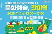 [경기뉴스원/경기뉴스1] | (재)예천문화관광재단은 11월 1일 예천군 호명읍 산합문화공원(걷고싶은 거리)에서 ‘문화예술, 간이역’ 10월 프로그램을 개최한다. ‘문화예술, 간이역’은 문화체육관광부와 지역문화진흥원이 주관하고, (재)예천문화관광재단이 주최하는 ‘2025 문화가 있는 날 구석구석 문화배달’ 사업의 일환으로, 일상 속에서 문화를 자연스럽게 접하고 다양한 문화 향유 기회를 누릴 수 있도록 기획된 지역 밀착형 프로그램이다. 이번 프로그램은 9월에 이어 두 번째로 진행되는 야외형 문화행사로, 단풍으로 물드는 가을 정취 속에서 다채로운 공연과 체험이 어우러진 프로그램으로 구성됐다. 주요 프로그램으로는 싱어송라이터 ‘어치브’와 ‘퓨전국악 이어랑’이 함께하는 청춘콘서트, 가족 단위 관객을 위한 마술과 버블쇼, 환경문제 인식을 높이는 체험형 콘텐츠 ‘리사이클 정류장’, 감성을 자극하는 독서 프로그램 ‘북적북적 북크닉’이 준비된다. 특히 이번 북크닉에서는 예천 출신의 그림작가 송태고 작가와 함께하는 북 토크 콘서트와 클레이 체험 프로그램도 함께 진행되어 지역 예술가와의 교류를 통해 문화적 의미를 더