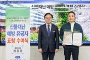 [경기뉴스원/경기뉴스1] | 서울 강서구는 지난 5일 봉제산에서 발생한 산불을 신속히 신고해 초기 진화에 기여한 주민 정종윤(57)씨에게 표창장을 수여했다. 화곡동에 거주하고 있는 정 씨는 지난달 7일(토) 오후 3시경 봉제산에서 연기가 피어오르는 것을 목격한 후 건물 옥상으로 올라가 산불임을 재차 확인하고 즉각 강서소방서로 신고했다. 이날 화재 진압에는 인력 96명과 장비 22대가 투입됐으며, 정 씨의 신속한 신고 덕분에 신고 접수 26분 만에 불길을 완전히 진압했다. 화재로 산림 일부가 소실됐으나, 인명피해는 발생하지 않았다. 산불이 발생한 봉제산 인근에는 초등학교를 비롯해 3개교가 밀집해 있을 뿐만 아니라 발화지에서 주택지까지는 불과 20m로 자칫 대형 피해로 이어질 수 있었던 상황이었다. 진교훈 구청장은 “주민의 적극적인 신고가 있었기에 불길 확산을 막고 더 큰 피해를 막을 수 있었다”며 “우리 지역의 소중한 산림과 구민의 안전을 지켜주셔서 깊이 감사드린다”고 말했다.