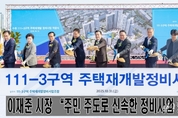 【수원=경기뉴스원/경기뉴스1】 | 수원 영화동 111-3구역이 정비구역 지정 16년 만에 본격적인 재개발 공사에 돌입했다. 10월 31일 장안구 경수대로 815-2 현지에서 열린 착공식에는 이재준 수원시장, 김승원 국회의원, 수원시의회 의원, 조합원, 시공사 관계자 등이 참석했다. 111-3구역은 2009년 정비구역으로 지정됐지만, 이후 해제와 지정 취소를 반복하며 사업 추진이 지연됐다. 그러나 2023년 5월 관리처분인가를 받으며 본격적인 공사에 착수할 수 있게 됐다. 사업 계획에 따르면 지하 2층~지상 29층, 6개 동, 총 556세대의 공동주택이 들어서며, 준공은 2028년 8월 예정이다. 특히 이번 구역은 용적률 인센티브로 늘어난 72세대 중 36세대를 ‘새빛안심전세주택’으로 수원시가 매입하는 구조가 포함되어 있어, 행정 절차와 예산 확보에 상당한 시간이 소요됐다. 이재준 시장은 “재개발 과정에서 우여곡절이 있었지만, 조합원과 시가 협력해 첫 삽을 뜨게 된 것을 축하한다”며 “주민 주도의 신속한 정비사업 추진을 위해 시 차원의 지원을 계속하겠다”고 말했다. 이번 재개발 구역은 신분당선 연장선 수성중사거리역과 동탄인덕원선 장안구청역이 도보권에 위치해 교