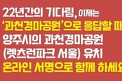 [경기뉴스원/경기뉴스1] | 양주시가 과천경마공원 양주시 유치를 위한 범시민 10만 명 서명운동에 본격 돌입했다. 양주시는 지난 23일 '과천경마공원 양주시 유치 추진위원회' 발대식과 함께 10만 명 서명운동을 추진한다고 30일 밝혔다. 서명은 양주시 홈페이지를 통한 온라인 서명과 오프라인 서명부 작성 두 가지 방식으로 진행되며, 양주시민뿐 아니라 국민 누구나 참여할 수 있다. 양주시가 경마공원 유치 후보지로 제시한 곳은 광적면 광석리 일원의 광석지구(약 116만㎡)다. 해당 부지는 2004년 택지개발지구로 지정된 이후 22년간 방치된 곳으로, 토지 보상이 완료돼 별도의 보상 절차 없이 즉시 개발에 착수할 수 있다는 점이 최대 강점으로 꼽힌다. 시는 경마공원이 이전될 경우 연간 약 500억 원의 지방세 수입과 약 3,000명의 상주 인력 유입, 방문객 증가에 따른 지역 상권 활성화 등의 효과를 기대하고 있다. 양주시 관계자는 "범시민 서명운동은 양주시의 의지를 정부와 한국마사회에 직접 전달할 수 있는 가장 강력한 방법"이라며 "시민 여러분의 적극적인 동참을 부탁드린다"고 말했다.