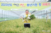 경기뉴스원 유형수 기자 | 여주시(시장 이충우)는 지난 6월 27일 여주시 우만동 소재 홍기완 농가에서 2023년 여주시 첫 벼베기를 실시했다. 이 날 수확한 벼는 지난 3월 여주시 첫 모내기를 했던 올벼로, 수확량은 약 800kg 이며 2023년 7월 농협유통 양재점에서 햅쌀 판매 행사 때 홍보용으로 이용할 계획이다. 2023년 대왕님표 여주쌀 첫 벼베기 행사에는 이충우 여주시장, 정병관 여주시의회 의장, 이문기 농협중앙회 여주시지부장, 신우용 점동농협조합장, 윤주병 여주시농협조합공동사업법인 대표 등이 참석했다. 이충우 여주시장은 “첫 모내기를 하던 게 엊그제 같은데 벌써 100여일이 지나 첫 수확을 하는 날이 왔다. 그 기간동안 애써주신 홍기완 농업인께 감사드린다.”라고 전하며 “올 해는 유독 비가 자주 오고 기상 여건이 좋지 않은데 많은 농업인들께서 노력한 만큼 풍년 농사를 이룰 수 있길 바란다.”라고 밝혔다.