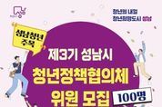 [경기뉴스원/경기뉴스1] | 성남시는 오는 2월 18일까지 ‘제3기 청년정책협의체’ 위원 100명을 공개 모집한다. 청년정책협의체는 지역 청년을 대표해 성남시에 청년정책을 제안하고 소통하는 청년 참여기구다. 제3기 협의체는 일자리·창업, 교육, 주거, 복지·문화 등 4개 분과로 구성된다. 선발되면 분과별로 △청년정책 의견 수렴과 정책 제안 △청년정책 모니터링 △청년정책 홍보 △ 청년의 날 기념 문화 행사 기획 등의 활동을 하게 된다. 제3기 협의체 활동 기간은 오는 3월부터 내년 말까지다. 시는 청년정책협의체 위원들이 정부의 제2차 청년정책 기본계획(2026~2030년)과 연계해 체계적인 정책 제안할 수 있도록 관련 정책 안내와 교육, 워크숍 등 활동의 장을 마련할 계획이다. 대면 회의에 참석한 위원에게는 참여 활동비 2만원을 지급하고, 우수 활동 위원에게는 연말 표창을 수여한다. 협의체 위원 참여 자격은 성남시에 거주하거나 지역 내 직장 또는 학교에 다니는 19~39세 청년이다. 시는 지원동기, 청년정책 관심도, 활동 경험 등을 서면으로 심사해 위