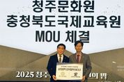 [경기뉴스원/경기뉴스1] | 충청북도교육청 직속기관인 국제교육원(원장 서강석)은 10일 오후 6시, 청주문화원(원장 강전섭)과 도내 이주배경학생 및 가족의 문화예술 역량 함양과 지역 문화예술교육 활성화를 위한 업무협약을 체결했다고 밝혔다. 협약식에는 서강석 원장과 강전섭 청주문화원장을 비롯해 4명의 관계자가 참석했다. 이번 협약은 이주배경학생들이 다양한 문화예술 활동을 체험하고 지역사회와 자연스럽게 소통할 수 있는 기반을 마련하기 위해 추진됐으며, 양 기관의 프로그램과 자원을 공유‧활용하여 지속 가능한 협력 체계를 구축하는 것을 목표로 했다. 주요 내용은 ▲문화예술 기반 인적‧물적 자원 상호 활용 ▲양 기관이 추진하는 문화예술 분야 사업 홍보 협조 ▲이주배경학생 및 가족 대상 문화예술 공연 관람 지원 등이다. 국제교육원은 이번 협약을 통해 학생들이 문화예술을 매개로 지역사회와 교류하고, 다양한 경험을 쌓으며 문화적 감수성을 높일 수 있도록 지원할 계획이다. 서강석 국제교육원장은 “이주배경학생과 가족들이 문화예술 활동을 통해 지역사회와 더욱 가까워지고, 일상 속에서 문화를 즐길 수 있는