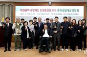 [경기뉴스원/경기뉴스1] | 대전시의회가 대전형 장애인 인권증진 조례 입법을 위해 전국 장애인 인권증진 관련 조례를 분석 비교하며 실효성 있는 제도 개선 방안 모색에 나섰다. 대전시의회 복지환경위원회는 4일 시의회 3층 소통실에서 황경아 의원(국민의힘, 비례대표) 주재로 '대전광역시 장애인의 인권증진을 위한 조례 입법개선 간담회'를 개최했다. 이번 간담회는 대전-세종장애인복지관협회와 공동으로 주관한 것으로 현행 대전시의 장애인 관련 조례를 점검하고, 인권보장 중심의 입법 개선 방향을 모색하는 시간으로 진행됐다. 김동기 목원대학교 교수가 공동좌장을 맡아 간담회를 진행했으며 황인헌 행복한우리복지관 사회복지사가 ‘전국 장애인 인권증진 관련 조례 분석 및 대전광역시 입법개선 방안’을 주제로 발표했다. 주제발표에서는 전국 16개 시도와 224개 기초자치단체의 장애인 관련 조례를△생활안정 △인권보장 △편의증진 △자립생활 △고용안정 △인식개선 △여가문화 △취약계층지원△보조기기 △행정인프라 △의료지원 △정보접근 등 12개 영역별로 분석하고, 대전시 조례의 보완사항을 진단했다. 이어진 지정토론에서는 서