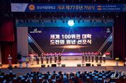 [경기뉴스원/경기뉴스1] | 경상국립대학교는 10월 20일 오전 10시 가좌캠퍼스 GNU컨벤션센터 2층 대강당에서 개교 77주년 기념식을 개최했다. 개교기념식은 개식, 국민의례, 대학 연혁 보고, 개척시 낭송, 총장 기념사, 축사, 시상식, 비전 선포식, 교가 제창, 기념 촬영 등의 순으로 진행했다. 개교기념식 행사는 경상국립대학교 유튜브 채널을 통해 실시간 송출했다. 경상국립대학교는 기념식에서 각종 시상식[개척명예장, 총장 특별상, 개척한림원 표창, 7인의 영리서처(Young Researcher) 현판 수여, 장기근속상]을 마련하여 대학 발전에 기여한 교내·외 인사와 우수 연구자들의 공로를 기렸다. ▲개척명예장은 ㈜영남소방엔지니어링 류상수 대표에게 수여했다. 류상수 대표는 경상국립대학교 농업기계공학과를 졸업(1982년)했으며, 삼성공조(주), 안전보건공단 등을 거쳐 1996년에 ㈜영남소방엔지니어링에 입사 후 2005년 대표이사로 취임했다. 3월 14일 대학발전기금 1억 원을 출연하며 “나눔을 받아야 하는 대상은 많지만 모교 후배들의 장학을 위한 발전기금으로 기부하는 것이 무엇보다도 가치 있는 일이고, 그들로