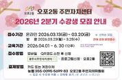[경기뉴스원/경기뉴스1] | 광주시 오포2동 주민자치센터는 오는 4월 1일 개관을 앞두고 3월 13일부터 20일까지 ‘2026년 2분기 주민자치 프로그램’ 수강생 924명을 선착순 모집한다. 오포2동 주민자치센터는 지난 2022년 오포읍에서 분동된 이후 3년 만에 양벌로 336에 새롭게 조성됐다. 시는 오는 26일 개관식을 개최한 뒤 4월 1일부터 본격적인 운영에 들어갈 예정이다. 이에 따라 그동안 인근 지역 시설을 이용해야 했던 주민들의 불편이 해소되고 생활권 내에서 주민자치 프로그램을 이용할 수 있는 여건이 마련됐다. 이번 2분기 프로그램은 4월부터 6월까지 3개월간 운영되며 건강·스포츠 강좌, 문화·예술 강좌, 교육·기술 강좌, 어린이 강좌 등 총 41개 과정으로 구성됐다. 수강 신청은 3월 13일부터 20일까지 광주시 주민자치센터 누리집을 통한 온라인 접수 방식으로 진행된다. 다만, 정원 미달 강좌에 한해 3월 23일부터 25일까지 오포2동 주민자치센터에서 현장 방문 접수도 추가로 실시할 계획이다. 수강료는 강좌별로 3개월 기준 5만4천 원에서 7만2천 원까지이며, 국가유공자와 장애인, 한부