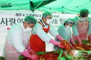 [경기뉴스원/경기뉴스1] | 김완근 제주시장은 11월 28일 남현김치에서 열린 제주4·3희생자유족회 제주시지부 부녀회(회장 김효자) 주관 김장김치 나눔 행사에 참석해 제주4·3유족들과 함께 김장을 담그는 뜻깊은 시간을 가졌다. 이번 행사는 제주4·3유족과 지역의 어려운 이웃들에게 김장김치를 전달해 겨울을 조금이나마 따뜻하게 보낼 수 있도록 돕기 위해 마련됐다. 행사장에서 김 시장은 절임배추에 양념을 정성껏 버무리며 부녀회 회원들과 함께 나눔의 의미를 되새겼다. 이날 담근 김장김치는 제주4·3유족을 비롯해 독거노인, 저소득 가구 등 어려운 이웃들에게 전달되어 따뜻한 겨울나기에 힘을 보탤 예정이다. 김효자 부녀회장은 “작은 정성이지만 누군가에게는 큰 힘이 되길 바라는 마음으로 김장을 준비했다”며, “앞으로도 지역사회에 온기를 전하는 활동을 꾸준히 이어가겠다”고 말했다. 김완근 제주시장은 “김장에는 단순한 음식 이상의 마음이 담겨 있다. 함께 버무린 이 한 포기의 김치가 누군가의 겨울을 덜 춥게 해주길 바라는 마음으로 참여했다”며, “특히 4·3 유족회 부녀회 여러분과 함께한 이 시간이 더