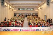 [경기뉴스원/경기뉴스1] | 김해시는 26일 국립김해박물관 대강당에서 노인일자리 참여자 등 230여 명이 참석한 가운데 ‘2026년 노인일자리사업 발대식’을 개최했다. 이날 행사에서는 모범 참여자와 수행기관 종사자에게 표창을 수여하여 그간의 노고를 격려하고, 참여자 안전교육과 소양교육을 통해 안전의식을 한층 높였다. 홍태용 시장은 “김해시는 2028년 초고령사회 진입을 앞두고 어르신이 보다 안전하고 편안하게 생활할 수 있는 도시 환경 조성에 힘쓰고 있다”며, “그중 노인일자리사업은 노인의 사회참여 확대와 활기찬 노후를 지원하는 핵심 정책으로, 안전과 건강을 최우선으로 추진하겠다”고 밝혔다. 김해시는 지난해보다 32억이 늘어난 329억 원의 예산으로 7,275명에게 노인일자리를 제공하고 있다. 노인일자리사업은 김해시니어클럽 등 민간위탁 수행기관 9개소와 19개 읍면동행정복지센터를 통해 운영된다. 공익활동형 일자리에는 4,443명이 참여해 공공기관 환경정비, 주차관리 등을 수행하며, 역량활용형 일자리에는 1,718명이 참여해 공공기관 및 복지시설 업무 지원을 맡는다. 그 밖에도