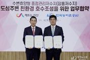 [경기뉴스원/경기뉴스1] | 충남 서산시는 도심주변 친환경호수 조성사업의 원활한 추진을 위해 한국농어촌공사 서산·태안지사와 업무협약을 체결했다고 밝혔다. 업무협약식은 지난 6일 시청 시장실에서 이완섭 서산시장, 김학배 한국농어촌공사 서산·태안지사장 등이 참석한 가운데 열렸다. 도심 주변 친환경호수 조성사업은 잠홍저수지의 수질개선을 위해 수질정화시설과 생태습지, 데크길과 광장 등을 조성하는 사업이다. 잠홍저수지의 수면 관리자는 한국농어촌공사 서산·태안지사로, 업무협약을 통해 잠홍저수지의 수질개선 대책 추진을 위한 협력 체계를 구축하기 위해 마련됐다. 협약서에는 사업 추진을 위한 서산시의 토지 사용, 향후 조성될 수질정화시설과 생태습지 등의 유지·관리에 대한 사항이 담겼다. 시는 오는 2027년 준공을 목표로 내년부터 하루 1만 톤 규모의 물을 정화할 수 있는 수질정화시설, 2만㎡의 생태습지 등을 조성해 나갈 방침이다. 이완섭 서산시장은 “한국농어촌공사 서산·태안지사와의 원활한 협력을 통해 잠홍저수지의 수질을 개선하고 명품 호수로 재탄생할 수 있도록 사업의 추진에 최선을 다하겠