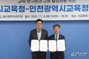 [경기뉴스원/경기뉴스1] | 인천광역시교육청은 울산광역시교육청과 4일 울산시교육청에서 ‘읽걷쓰 문화 확산을 위한 상호 협약’을 체결하고, 양 기관의 교류와 협력을 강화하기로 했다. 이번 협약은 인천시교육청의 읽걷쓰 교육 철학에 공감대를 형성하고, 교육·연구 분야 교류 및 지역 특성에 맞는 교육 모델 공동 개발을 추진하기 위해 마련됐다. 양 교육청은 ▲교육·연구 교류 활성화 ▲읽걷쓰·책크인·민주시민교육 등 프로그램 연계 ▲지역 문제 해결 및 사회공헌 프로그램 공동 운영 등을 추진하기로 합의했다. 또한 한국교원대학교에서 개발 중인 읽걷쓰 전국 단위 교원 연수비용 할인을 울산광역시교육청에도 적용하기로 했다. 협약식 후 도성훈 교육감은 ‘읽걷쓰와 함께하는 인천 평화교육’주제 강연에서 인간과 자연, 인공지능이 공존하는 시대에 나다움과 인간다움을 갖춘 애기애타 정신의 중요성과 인천교육청의 평화·민주시민교육 사례를 공유했다. 울산교육청 관계자는 “인천교육청의 읽걷쓰 철학에 깊이 공감한다”며 “양 기관의 협력으로 학생들의 삶과 학습을 연결하는 교육 혁신을 추진하겠다”고 전했다. 도성훈 교