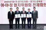 [경기뉴스원/경기뉴스1] | 경기도의회와 경기도교육청은 5일 ‘2025년도 제1차 여야정협치위원회 전체 회의’를 열고 내년도 본예산에 경기교육의 발전과 미래를 위한 협치예산을 공동 추진하기로 합의했다. 김진경(더민주·시흥3) 의장과 임태희 도교육감, 더불어민주당 최종현(수원7) 대표의원, 국민의힘 백현종(구리1) 대표의원, 김진수 제1부교육감 등은 이날 의회 예담채에서 첫 여야정협치위원회 전체 회의를 열었다. 도의회·도교육청 여야정협치위원회는 ▲현장 중심의 학교 운영 강화, ▲교육행정 접근 체계 개선, ▲미래 교육을 이끄는 학습 전환, ▲안전하고 효율적인 교육환경 조성, ▲지역협력 기반의 맞춤형 교육 확대 등 5대 분야 2,000억원 규모의 협치예산을 공동 추진하기로 합의했다. 양 기관은 여야정 협치의 정신 아래 학생이 행복하고 교사가 존중받으며, 지역이 함께 성장하는 경기미래교육을 위해 협치예산의 효율적인 집행과 함께 지속적인 협력을 이어가기로 했다. 김진경 의장은 “경기도 학생들을 위한 교육 현안만큼은 여와 야, 의회와 집행부가 따로 있을 수 없다”라며 “아이들의 더 나은 미래를 위해 책임을 함