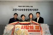 [경기뉴스원/경기뉴스1] | 고양시삼송동종합복지회관은 지난 3일, 설 명절을 앞두고 한국부동산원 고양지사로부터 쌀 500kg(10kg 50포대)을 후원받았다고 밝혔다. 이번 후원은 지역사회 내 저소득 소외계층의 따뜻한 명절나기를 지원하기 위해 마련됐으며, 전달된 쌀은 고양시삼송동종합복지회관을 통해 지역 내 취약계층 50가구에 지원될 예정이다. 곽영은 지사장은 “설 명절을 맞아 지역사회 이웃들에게 작은 도움이 되길 바라는 마음으로 후원을 진행했다”며 “앞으로도 사회적 책임을 다하고, 지역사회와 함께하는 나눔 활동을 지속해 나가겠다”고 말했다. 이경온 관장은 “매 명절마다 잊지 않고 따뜻한 나눔을 실천해주시는 한국부동산원 고양지사에 감사드린다”며 “후원해주신 쌀은 도움이 필요한 지역 내 저소득 가구에 소중히 전달하겠다”라고 말했다. 한편, 고양시삼송동종합복지회관은 지역 주민의 복지 증진과 삶의 질 향상을 위해 다양한 복지서비스와 나눔 활동을 지속적으로 추진하고 있다.