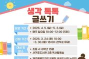 [경기뉴스원/경기뉴스1] | 제주도교육청 서귀포도서관은 4월 5일부터 초등학교 4~6학년을 대상으로 ‘생각 톡톡 글쓰기’ 프로그램을 운영하며 참가자 15명을 선착순 모집한다. 이번 프로그램은 어린이들이 생각을 글로 표현하는 과정을 통해 창의적 사고력과 자기표현 능력을 키울 수 있도록 마련됐다. 운영 기간은 4월 5일부터 5월 3일까지이며 매주 일요일 오전 10시부터 12시까지 총 5회에 걸쳐 진행된다. 교육은 고지은 독서논술지도사가 맡아 ▲좋은 글 읽기 ▲글감 찾기 ▲글의 구조 이해 ▲초안 작성 ▲퇴고 과정 등 단계별 글쓰기 활동으로 구성되며 학생들이 자신만의 글을 완성할 수 있도록 지도할 예정이다. 특히 마지막 차시에는 어린이 작가와의 만남과 낭독회를 통해 학생들이 직접 쓴 글을 발표하는 기회를 제공한다. 참가 신청은 24일 오전 10시부터 제주특별자치도교육청 공공도서관 누리집을 통해 가능하며 선착순으로 마감된다. 서귀포도서관 관계자는 “이번 프로그램이 어린이들이 글쓰기에 대한 흥미를 높이고 자신의 생각을 자신감 있게 표현하는 계기가 되기를 기대한다”며 “앞으로도 다양한