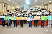 [경기뉴스원/경기뉴스1] | ‘전남광주통합특별시 설치를 위한 특별법’의 국회 통과를 기념하고, 통합특별시 출범을 향한 시도민 공감대 형성과 실행 의지를 공유하는 자리가 마련됐다. 광주광역시와 전라남도는 3일 나주시 한국에너지공과대학교 대강당에서 ‘광주전남 행정통합 시도민보고회’를 열어 특별법 통과까지 추진 경과와 미래 비전을 공유했다. 이날 보고회에는 강기정 광주시장과 김영록 전남지사, 시도의회 의장, 범시도민협의회 위원, 시도민 등 700여명이 참석했다. 보고회는 ▲전남광주통합특별법 브리핑 ▲시도민이 기대하는 변화(정보무늬 투표) ▲내가 바라는 전남광주통합특별시 희망 메시지 발표(시도민 대표 10명) ▲미래 다짐 퍼포먼스 및 기념 촬영 순으로 진행됐다. ‘시도민이 기대하는 변화’ 투표에서는 일자리 확대, 기업 유치, 청년 정착 확대가 주요 과제로 선정됐다. 통합을 통한 지역경제 활성화에 대한 기대가 높은 것으로 확인됐다. 또 시도민 대표 10명이 참여하는 ‘내가 바라는 전남광주통합특별시’에서는 인공지능(AI)·반도체 등 첨단산업 육성, 균형발전, 골목상권 활성화에 대한 염원이 주를 이