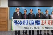 [경기뉴스원/경기뉴스1] | 충북 옥천군의회는 24일 열린 제329회 제2차 정례회 제1차 본회의에서 필수농자재 지원법률의 조속한 제정을 촉구하는 건의안을 만장일치로 채택했다. 통계청 자료에 따르면, 2024년 농가구입가격지수*는 2020년 대비 20.1% 상승했으며, 특히 재료비는 32.5% 급등했다. 반면 농업소득은 957만 원에 불과해 농가 경영난이 심화되고 있다. *농가가 영농에 필요한 각종 자재, 기계, 공산품 등을 구입하는 평균 비용을 산정한 물가지수 현재 ‘필수농자재 지원법’은 국회 농림축산식품해양수산위원회를 통과했으나, 본회의 의결과 시행령 제정 등 후속 절차가 남아있어 실제 시행까지는 상당한 시일이 소요될 전망이다. 이날 건의안에서는 ▷입법 절차의 조속한 완료 및 시행령 제정 등 후속조치 신속 추진 ▷충분한 국비 확보와 지속가능한 중장기 재정 지원방안 마련 ▷적기 지원금 지급과 현장 맞춤형 지원 등 실효성 있는 집행체계 구축을 정부와 국회에 강력히 촉구했다. 추복성 의원은 “법률이 제정되더라도 시행령 제정 등 후속 절차로 인해 실제 지원까지 최소 수개월이 소요될 수 있다”며, “무엇