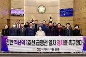 [경기뉴스원/경기뉴스1] | 천안시의회는 12월 3일 열린 제284회 제2차 정례회 제2차 본회의에서 김철환 의원(국민의힘, 성환읍직산읍입장면)이 대표 발의한 ‘천안시 직산역 지하철 1호선 급행선 열차 정차 촉구 건의안’을 채택했다. 이번 건의안은 천안 북구 산업벨트의 중심지로 성장 중인 직산읍의 교통 여건을 개선하고, 산업단지 활성화와 지역경제 발전을 도모하기 위해 마련됐다. 직산읍 일대는 ▲천안테크노산업단지 ▲직산도시첨단산업단지 등 총 6개의 산업단지가 조성·추진되고 있어 향후 인구 증가와 교통량 폭증이 예상되는 지역이다. 특히 산업단지 활성화의 핵심 요인인 출퇴근 교통 접근성 확보를 위해 급행열차 정차 필요성이 지속적으로 제기돼 왔다. 그러나 현재 직산역은 이용객 증가에도 불구하고 두정역과 성환역 사이의 유일한 급행 비정차 구간으로 남아 있어 교통 편익의 불균형 문제가 꾸준히 지적돼 왔다. 건의문을 대표 발의한 김철환 의원은 “급행열차 정차는 별도의 신규 시설 투자 없이 운행계획 조정만으로도 가능하며, 지역경제와 산업 경쟁력 강화에 즉각적인 효과를 가져올 것”이라고 강조했다.