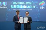 [경기뉴스원/경기뉴스1] | 영천시는 28일 영남대학교 천마아트센터 이시원 글로벌컨벤션홀에서 영남대학교와 지역 발전과 혁신 생태계 조성을 위한 상호 협력 업무협약(MOU)을 체결했다. 이번 협약은 양 기관이 자원 공유와 프로그램 공동 운영 등 상호 교류와 협력에 필요한 사항을 합의한 것이다. 주요 내용으로는 ▲경북 RISE 사업 공동 대응 ▲AI 등 신산업 인력양성 ▲문화·인문 콘텐츠 개발 ▲국가 공모사업 공동 참여 ▲공동 학술행사 개최 및 인적 교류 활성화 등으로, 지역사회와 대학이 함께 성장할 수 있는 협력 기반을 마련했다. 협약식 이후 진행된 ‘YU프론티어 포럼’에서는 최기문 영천시장이 ‘지방소멸시대, 변화와 혁신으로 영천의 미래를 디자인한다’를 주제로 강연을 펼쳤으며, 대학의 우수한 연구 역량과 지역 산업을 연결해 지속 가능한 혁신 생태계를 조성하는 것이 지역 발전의 핵심임을 강조했다. 최기문 시장은 “이번 협약을 계기로 지역과 대학이 긴밀히 협력해 미래 성장 동력을 발굴하고, 지속 가능한 발전 기반을 마련하겠다”며, “앞으로도 대학과 지역사회가 함께 성장할 수 있는 다양한 협력 사업을 적극