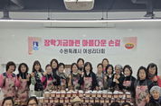 [경기뉴스원/경기뉴스1] | 수원시여성리더회가 5일 행궁동 어울림센터 공용주방에서 ‘장학기금 마련 젓갈 포장 행사’를 열었다. 김미애 수원시여성리더회 총회장과 이지영 수원시여성단체협의회 명예회장 등 회원 20여 명이 참여해 명란젓과 낙지젓 등 4종의 젓갈을 소포장해 판매했다. 수익금은 장학금으로 기부할 예정이다. 김미애 총회장은 “장학기금 마련에 동참해 주신 모든 분께 감사드린다”며 “이번 행사가 학생들의 미래를 응원하는, 작은 힘이 되길 바란다”고 말했다. ‘수원시 여성지도자대학’ 수료생으로 구성된 수원시여성리더회는 2004년 출범 이후 한부모가정 지원, 저소득 중·고등학생 장학금 후원, 복지관 중식 봉사, 소외계층 김장 봉사, 헌혈 캠페인 등 지역사회를 위한 나눔·봉사 활동을 꾸준히 하고 있다.