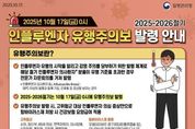 [경기뉴스원/경기뉴스1] | 17일 질병관리청이 전국에 인플루엔자 유행주의보를 발령한 가운데, 안양시는 시민들에게 인플루엔자 예방접종과 개인 위생수칙 준수 독려에 나섰다. 이번 유행주의보는 전국 298개 표본 의료기관의 인플루엔자 의사환자 분율이 외래 환자 1천명당 12.1명으로, 절기 유행기준(9.1명)을 초과함에 따라 발령됐다. 이는 예년보다 이른 시기의 유행 시작으로, 소아⸱청소년 및 어르신층에서 감염증가가 예상된다. 만안구보건소 관계자는 “예방접종이 인플루엔자 예방의 가장 효과적인 수단”이라며 특히 어린이(2012년 1월 1일∼올해 8월 31일 출생자), 임산부, 만 65세 이상 어르신의 예방접종 참여를 당부했다. 현재 75세 이상 어르신(1950년 12월 31일 이전 출생) 대상으로 무료인플루엔자 접종이 진행 중이며, 70∼74세는 오는 20일, 65∼69세는 22일부터 무료접종을 받을 수 있다. 14세~64세 시민은 주소지와 관계없이 가까운 위탁의료기관에서 유료 접종이 가능하며, 위탁의료기관은 ‘예방접종도우미’누리집에서 확인 가능하다. 최대호 안양시장은“손씻기, 기침예절, 마