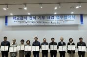 [경기뉴스원/경기뉴스1] | ‘수원시 학교급식 잔식 기부사업’에 참여하는 학교가 기존 8개에서 14개로 늘어난다. 수요처도 2개 기관에서 8개 기관으로 증가한다. 수원시는 19일 농수산물도매시장 관리동 대회의실에서 신규 참여기관과 업무협약을 체결하고, 적극적인 협력을 약속했다. 신규 참여기관은 다솔·당수초등학교, 권선중학교, 망포·매향여자정보·조원·천천·한봄고등학교 등 8개 학교와 서호·수원·수원YWCA·우만·청솔·효경의손길 등 6개 재가노인지원서비스센터이다. 협약에 따라 8개 학교는 학교급식 잔식 기부에 협력하고, 6개 재가노인지원서비스센터는 학교급식 잔식을 기부받아 도움이 필요한 이웃에 전달하는 역할을 한다. 학교급식 잔식 기부사업은 학교급식에서 배식하지 않고 남은 음식을 먹거리 취약계층에 지원해 돌봄 사각지대를 해소하고, 식량자원을 순환하는 사업이다. 수원시와 수원교육지원청·수원지속가능발전협의회·수원시자원봉사센터, 8개 초중고등학교, 광교종합사회복지관·우만종합사회복지관은 지난해 8월 협약을 체결하고, 9월 2일부터 12월 12일까지 학교급식 잔식 기부 시범사업을 운영한 바 있다.