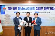 [경기뉴스원/경기뉴스1] | 김천시는 지난 24일, 김천시청 접견실에서 김대근농약사 김대근 대표의 ‘김천 9호(경북 189호) 아너 소사이어티 신규 회원 가입식’을 개최했다고 밝혔다. ‘아너 소사이어티(Honor Society)’는 사회복지공동모금회가 운영하는 고액 기부자 클럽으로, 1억 원 이상을 일시 또는 5년 이내 분할 기부하는 개인에게 부여되는 명예로운 회원 자격이다. 김대근 대표는 지난 2022년 이후 김천에서 3년 만에 새롭게 탄생한 신규 회원으로, 이번 가입으로 김천시의 아너 소사이어티 회원은 총 9명으로 늘었다. 이날 가입식에는 배낙호 김천시장을 비롯해 전우헌 경북사회복지공동모금회장, 장재호 김천 사랑의열매 나눔봉사단장 등이 참석해 김대근 대표에게 진심 어린 축하와 응원의 메시지를 전했다. 김천 출신의 젊은 기업인 김대근 대표는 평소에도 어려운 이웃에 대한 관심과 애정으로 지속적인 사회공헌 활동에 참여해 왔다. 그는 부친과 함께 ‘김부자종합농약사’를 운영하며 2013년부터 2021년까지 매월 정기 기부에 참여했으며, 최근 새로 문을 연 ‘김대근농약사’로도 그 나눔을 이어갈