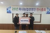 [경기뉴스원/경기뉴스1] | 여주시 북내면 후계농업경영인회는 지난 20일, 북내면 행정복지센터를 방문해 관내 어려운 이웃을 위한 이웃돕기 성금 100만 원을 전달했다. 이번 기탁은 회원들이 뜻을 모아 개최하는 연시총회를 앞두고, 지역사회의 소외된 이웃들이 따뜻한 새해를 맞이하기를 바라는 마음에서 진행됐다. 북내면 후계농업경영인회는 매년 잊지 않고 어려운 이웃을 위한 성금을 기탁하며 지역사회의 귀감이 되고 있다. 전달된 성금은 경기사회복지공동모금회를 통해 북내면 내 저소득층 및 복지 사각지대 가구를 지원하는 사업에 사용될 예정이다.