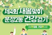 [경기뉴스원/경기뉴스1] | 파주시 운정2동은 오는 3월 28일 11시, 운정건강공원(가온초교 옆)에서 '제4회 새봄맞이 운정2동 건강걷기'를 개최한다. ‘새봄맞이 운정2동 건강걷기’는 올해 4회째로 봄을 맞아 만발한 꽃과 자연을 느끼며 운정2동의 공원 산책길을 걷는 행사다. 참여자들은 운정건강공원(가온초 옆)에서 출발해 산내공원을 경유해 약 3km의 구간을 걷는다. 별도의 사전 신청 없이 누구나 참여할 수 있다. 파주시립예술단의 활기찬 식전 공연을 시작으로 ‘가온한양대태권도시범단’, ‘하이줌바’등 공연과 다양한 체험 공간 등 다채로운 행사가 준비되어 가족과 함께 즐길 수 있는 자리가 마련됐다. 특히 이번 행사는 작년보다 체험 공간을 대거 확충하여 시민들에게 다양한 볼거리, 즐길 거리를 제공한다. 또한, 이번 걷기행사는 주민 중심의 걷기 문화를 확산하여 더욱 건강한 운정2동을 만들기 위해 파주보건소, 운정보건소와 협업하여 개최된다. 운정보건소는 현장 건강 홍보관을 운영하고 파주보건소는 걷기 홍보물 제공, 모바일 걷기 앱 ‘워크온’걷기 챌린지 참여를 독려하여 일상 속 걷기 실천을 유도한다. 파주시 ‘
