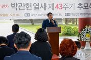 [경기뉴스원/경기뉴스1] | 이정선 광주시교육감이 12일 국립5·18민주묘지 ‘역사의 문’ 앞에서 열린 ‘민주화의 새벽기관차 박관현 열사 제43주기 추모식’에 참석했다. 이날 추모식에는 이정선 교육감을 비롯해, 강기정 광주광역시장, 윤목현 5·18기념재단 이사장, 이개호 영광군 국회의원, 유족 및 시민사회단체 관계자 등이 참여해 열사의 숭고한 뜻을 기렸다. 이정선 교육감은 “박관현 열사의 숭고한 정신을 잊지 않고 기억하는 길은 5·18 정신을 미래 세대에 계승하고 발전시키는 교육이다”며, “오월 정신을 전국으로, 세계로 알리고 확산하여 민주주의와 인권, 평화의 가치를 교육 현장에서 실천해 나가겠다”고 밝혔다.