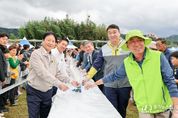 [경기뉴스원/경기뉴스1] | 성주군 수륜면 수성리 어울림마당(수성리 104)에서 10. 18.부터 19.까지 이틀간 열린 성주군 가을 대표축제 '2025 성주가야산 황금들녘 메뚜기축제'가 전국 각지의 관광객이 모이며 성황리에 종료됐다. 축제장 진입로에 늘어선 허수아비와 바람개비 행렬은 방문객들을 따스하게 맞이하고 축제장 입구에 펼쳐진 황금빛 들녘은 가을의 풍요로움을 아낌없이 선사한 축제였다. 축제 대표 프로그램인 친환경 농촌체험(메뚜기잡이, 고구마 캐기, 메기잡이, 사과낚시)과 온 가족이 함께하는 가을 운동회, 다양한 체험 부스와 공연은 방문객들에게 풍성한 즐길거리·볼거리를 제공했고, 축산물 무료시식 및 다양한 먹거리들로 방문객들의 입맛까지 사로잡았다는 평이다. 전년에 이어 올해도 무대와 개막식 행사를 없애는 대신 축제장을 방문한 관광객들과 함께 청정 수륜쌀로 만든 가래떡을 길게 뽑으며 모두의 행복과 안녕을 기원하는 ‘한마음 가래떡 뽑기’ 퍼포먼스를 펼쳐 축제장을 찾은 방문객들에게 색다른 재미를 선사했다. 올해는 그동안의 성과에 만족하지 않고 신규 프로그램과 체험을 개발하여 축제를 내실화했다는 점에
